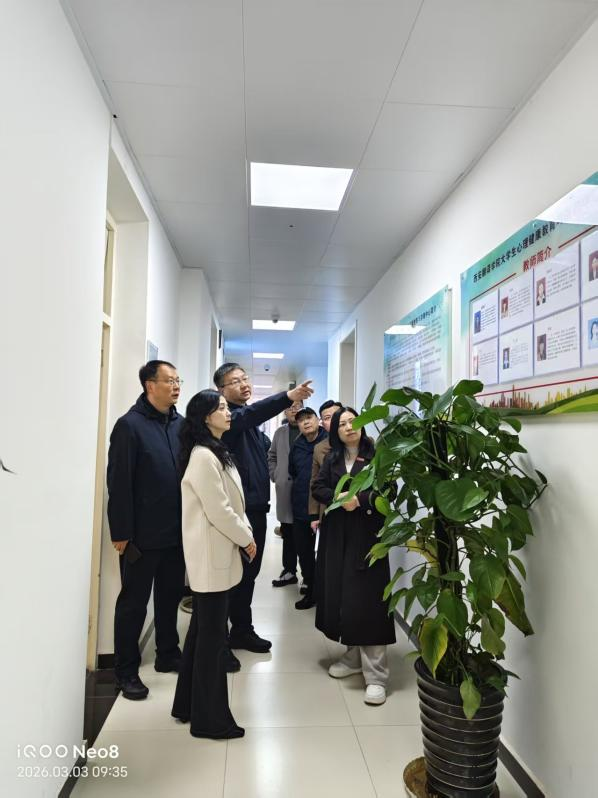 马洁一行先后实地察看心理健康教育与咨询中心、学生“一站式”社区等育人阵地,详细了解学生日常管理、心理服务、社区保障及资助育人等工作开展情况。